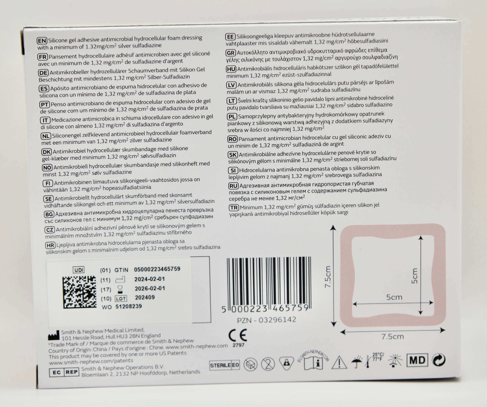 Smith & Nephew - Allevyn Ag Gentle Border - 7.5 cm x 7.5 cm - 66800436
