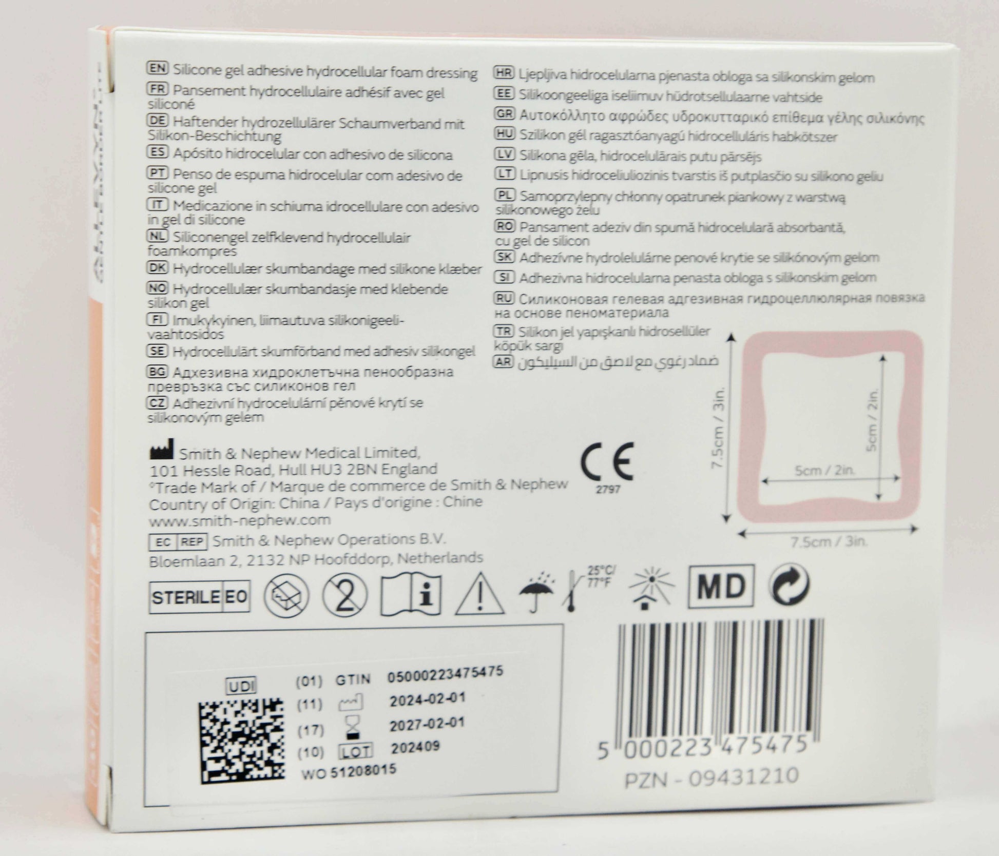 Smith & Nephew - Allevyn Gentle Border Lite - 7.5 cm x 7.5 cm - 66800834